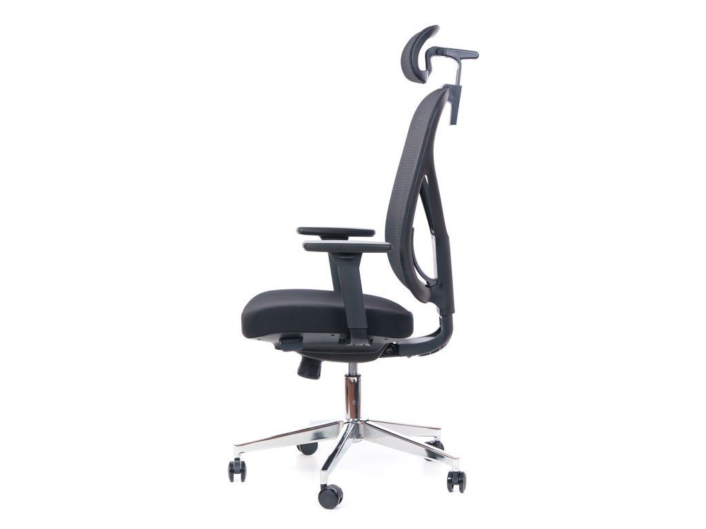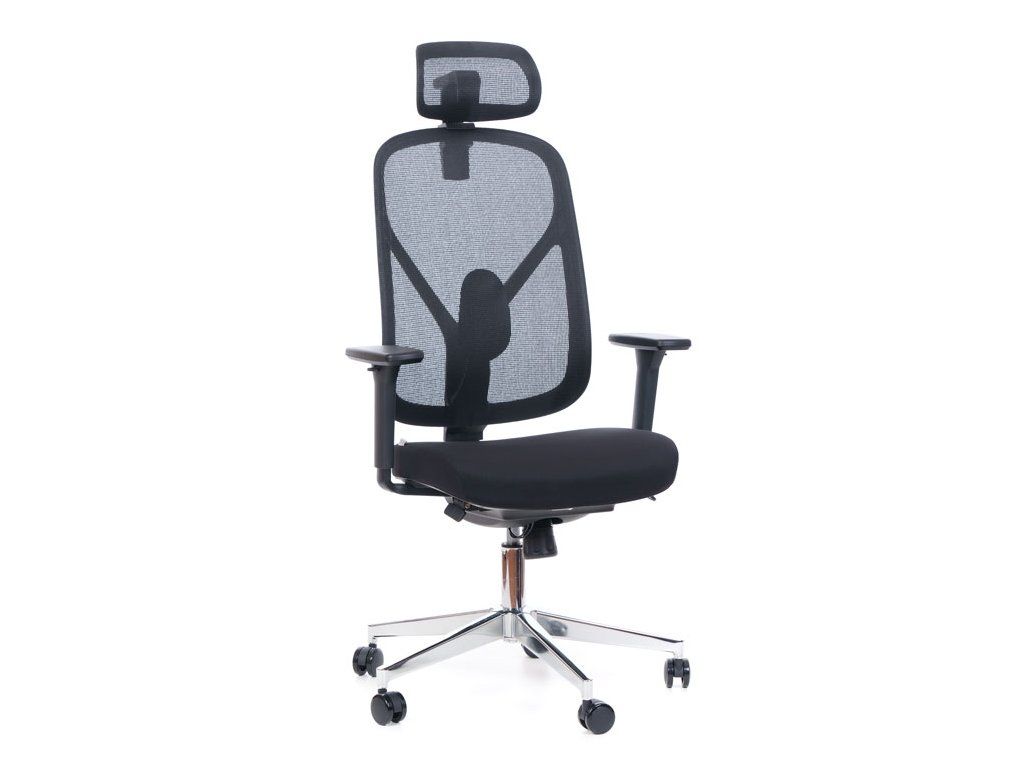 Výškově stavitelné područky s polohovatelnými PU krytkami dodají při práci u stolu podporu vaším předloktím. Nesmíme opomenout ani kvalitní chromový pětiramenný kovový kříž osazený univerzálními kolečky Ø 60mm určenými pro všechny typy povrchů, dodání v demontu v kartonu 74x66x37,5 cm, barevné provedení černá.